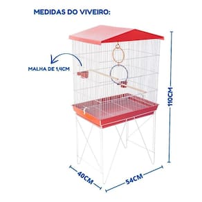 Altura com o pé: 110cm Largura: 54cm Profundidade: 40cm Altura sem o pé: 65cm Altura somente do pé: 45cm Malha do aramado: 1,4cm