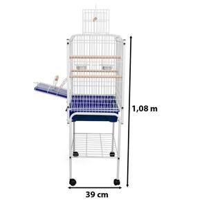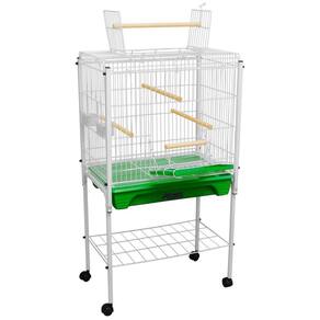 Viveiro para Calopsita Ringneck Aves Mansas Teto com Poleiro Cor: Verde Que tal esse lindo viveiro para seu pet Ótimo tamanho, pintura de qualidade, super resistente, rodízios para facilitar a locomoção, abertura no teto com poleiro, porta estilo levadiça também poleiro. Bandeja e fundo aramado removíveis. Porta e teto com travas para maior segurança. - Largura: 59 cm- Altura: 108 cm- Profundidade: 39 cm- Altura somente do corpo: 50 cm- Altura dos pés até a bandeja: 58 cm- Poleiros feitos de madeira eucalipto natural- Espaço entre malhas arames : 17 mm- Aves indicadas: Psitacídeos de pequeno porte Calopsita, Papagaio, Ring neck - Tinta epóxi branca- Bandeja plástica de polipropileno super resistente- Manter ao abrigo do sol- Produto segue com manual Marca: Gaiolas Quatiguá