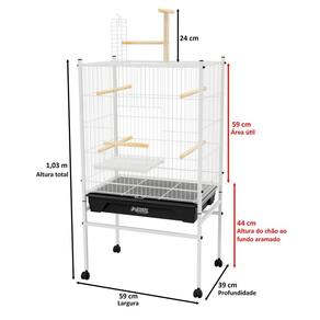 Proporcione um ambiente seguro e confortável para suas preciosas calopsitas, ring necks e papagaios com o nosso Viveiro de Malha Larga para Aves de Médio Porte. Com medidas ideais e uma construção robusta, este viveiro oferece o espaço perfeito para que suas aves possam voar e brincar com liberdade. Na parte superior, o viveiro apresenta um teto com abertura, equipado com um poleiro adicional para proporcionar mais opções de exercício e entretenimento para suas aves. Características Principais: Comprimento: 59 cm Altura: 110 cm Profundidade: 39 cm Altura do viveiro sem os pés somente o corpo : 66 cm Malha larga de 17mm para máxima segurança. 1 poleiro no teto para exercício e descanso adicional. 2 Comedouros plástico Bandeja plástica removível para fácil limpeza. Porta com poleiro para acesso fácil e diversão Construção durável com arame BTC e pintura epóxi branca. Ideal para Diversas Espécies de Aves: Este viveiro é projetado especificamente para atender às necessidades das ring necks, calopsitas e papagaios, oferecendo-lhes um espaço seguro e acolhedor para viver e explorar. Marca: Não Informado Ean: 7791442383167