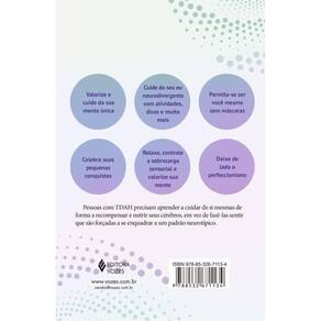 Este livro reúne mais de 100 práticas de autocuidado pensadas especialmente para quem vive com TDAH. Com linguagem acolhedora e acessível, a autora propõe estratégias que ajudam a enfrentar o cansaço, a frustração e o sobrecarregamento causados por desafios cotidianos. Ao reconhecer o potencial criativo e energético das pessoas com TDAH, ela oferece ferramentas personalizadas para recarregar as energias, desenvolver o foco e cultivar bem-estar de forma duradoura, tudo longe de abordagens convencionais e com foco na realidade de quem busca viver bem com TDAH.