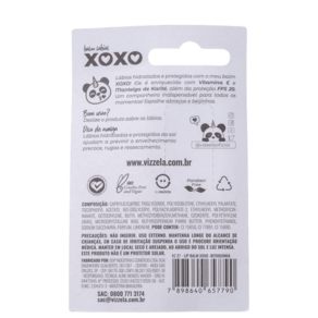 Bálsamo labial. Vizzela Cosméticos Balm Xoxo traz fórmula com vitamina E, manteiga de karité e FPS 20 para deixar os lábios hidratados, macios e protegidos do sol e do ressecamento.