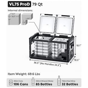 Design de tampa com múltiplas aberturas Você pode alterar a direção de abertura da tampa sem montagem. O acesso ao zenamento refrigerado pode se tornar muito fácil, mesmo no espaço apertado dentro de um veículo em movimento. As portas 12, 24 V DC estão instaladas em ambos os lados do refrigerador. 2 tomadas USB projetadas para carregar dispositivos móveis disponível apenas com alimentação DC. O transformador CA integrado permite que você resfrie previamente o refrigerador na tomada de 110 240V da sua casa. Design Humanizado Projetado com orifício de drenagem, defletor à prova dágua, luzes LED e alças removíveis. A embalagem também vem com cesto removível, alças de reposição, protetores de canto e bujões de drenagem. Compressor SECOP Faixa de resfriamento de 0 F a 50 F 18 10 para atender a todas as suas necessidades de congelamento ou refrigeração. Modo MAX para resfriamento rápido e modo ECO para economia de energia. A tecnologia de ponta torna possível trabalhar de forma estável, mesmo com uma inclinação de 40 Marca: Não Informado