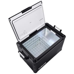 Tampa multidirecional Aço resistente, perfeito para a vida de seu RV. A tampa removível com abertura de duas vias é conveniente para você tirar alimentos da geladeira. Fácil de abrir a geladeira mesmo no porta malas do carro. Design atualizado Equipado com orifício de drenagem, defletor à prova dágua, luzes LED e alças de ângulo ajustável removíveis. O pacote também vem com cesta removível, alça de reposição, protetores de canto e bujão de drenagem. A base antiderrapante pode fixar melhor o refrigerador no caminhão. Plugues para portas DC multiuso 12V 24V com ambos os lados para uso fácil de bateria portátil e carro. Porta CA embutida 110 240 V para uso doméstico. Duas saídas USB projetadas para carregar dispositivos móveis disponível apenas quando conectado com alimentação DC. Compressor SECOP Desempenho de resfriamento poderoso de 0 F a 50 F 18 10 . Modo MAX para resfriamento rápido e modo ECO para economia de energia. A tecnologia de inclinação superior possibilita um trabalho estável mesmo abaixo de 40 Marca: Não Informado