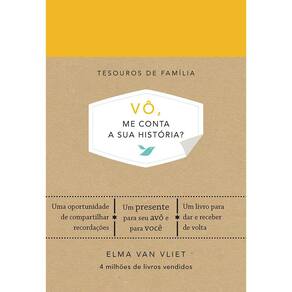 Tesouros de família Normalmente não devolvemos os presentes que ganhamos, Mas este livro é uma exceção à regra. A intenção é que seu avô o preencha e depois o devolva a você. Um presente para seu avô. Um tesouro para você Depois de escrever um livro de perguntas voltado para as mães, Elma van Vliet percebeu que as pessoas também tinham vontade de mergulhar nas memórias de outros membros da família. Assim, Vô me conta a sua história? é um convite para viajar no tempo ao lado de seu avô e ajudá-lo a reviver os episódios mais marcantes de sua vida. Quais eram seus sonhos? Quais foram suas maiores realizações? Quem foi seu primeiro amor? Quando receber este livro de volta, você não só conhecerá melhor o seu avô como também terá um retrato emocionante de suas próprias origens. Com espaço para escrever, colar fotografias e incluir o que mais desejar, este livro é um presente valioso. Afinal, os verdadeiros tesouros de família são as lembranças que compartilhamos com as pessoas que amamos.