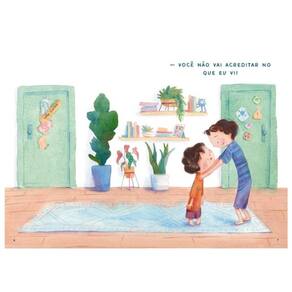 Uma criatura enorme, de orelhas gigantes, cauda cheia de espinhos e olhos assustadores está bem pertinho da casa de dois irmãos. E agora?! Muito aflito, o irmão mais velho corre para contar ao irmão mais novo: ele acaba de ver uma criatura apavorante! O que fazer? Como eles vão se defender? Preocupado, o mais novo vai para o quarto sem dizer uma palavra. Neste livro divertidíssimo de Fran Matsumoto, o menino mais velho quer assustar o irmão, mas quem acaba levando o susto é ele mesmo. Quer saber como? Por agora, só posso falar que o mais novo tem um segredo muito bem guardado que está prestes a ser descoberto. A autora de Minúscula (finalista do Prêmio Jabuti 2023 e da Mostra de Ilustradores da Feira do Livro Infantil e Juvenil de Bolonha 2024) explora com perspicácia e humor a relação — ora conflituosa, ora cheia de afeto — entre irmãos em um contexto de dar medo. Um quarto escuro, uma sombra, um barulho: o desconhecido assusta. Mas você já parou para pensar que, muitas vezes, quem assusta também se assusta? Indicado para leitores a partir de 4 anos.