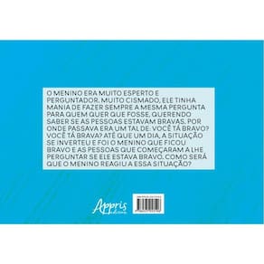 O MENINO ERA MUITO ESPERTO E PERGUNTADOR. MUITO CISMADO, ELE TINHA MANIA DE FAZER SEMPRE A MESMA PERGUNTA PARA QUEM QUER QUE FOSSE, QUERENDO SABER SE AS PESSOAS ESTAVAM BRAVAS. POR ONDE PASSAVA ERA UM TAL DE: VOCÊ TÁ BRAVO? VOCÊ TÁ BRAVA? ATÉ QUE UM DIA, A SITUAÇÃO SE INVERTEU E FOI O MENINO QUE FICOU BRAVO E AS PESSOAS QUE COMEÇARAM A LHE PERGUNTAR SE ELE ESTAVA BRAVO. COMO SERÁ QUE O MENINO REAGIU A ESSA SITUAÇÃO? Marca: ARTERINHA EDITORA Ean: 9786525053196