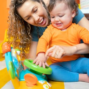 - O bebê está atrás do volante da hora de brincar