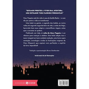 Título Do Livro: A volta de Mary Poppins: edição bolso de luxo Autor: Travers, P. L. Idioma: Português Editora Do Livro: CLASSICOS ZAHAR Capa Do Livro: Dura Ano De Publicação: 2018 Quantidade De Páginas: 336 Altura: 170 mm Largura: 120 mm Peso: 360 g Tradutores: Gambarotto Bruno Gênero Do Livro: Literatura e ficção Subgêneros Do Livro: Ficção Ilustradores: Shepard Mary Data De Publicação: 11-10-2018