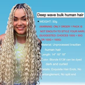 - Cabelo humano ondulado profundo para tranças boho – Sem produtos químicos, o cabelo humano encaracolado para tranças boho pode ser descolorido tingido com permanente e estilo. Também adequado para qualquer ocasião, como dia a dia, casamento, namoro, formatura, cerimônia, festas de férias para outras pessoas e mais