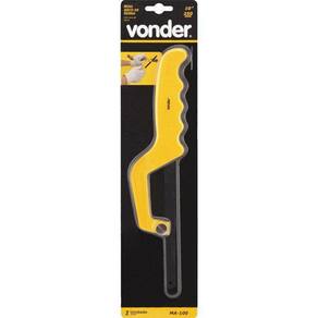 Vonder - Miniarco De Serra Em Alumínio Conteúdo da Embalagem: 01 mini arco de serra, acompanha: 1 lâmina de serra Indicado para metais, plásticos, madeiras e derivados, utilizando a lâmina adequada. Acompanha lâmina de serra de aço carbono para corte de madeira e PVC. Para corte de metais, será necessário adquirir lâmina de aço rápido. Ideal para trabalhos leves de corte. Proporciona praticidade para corte em locais de difícil acesso onde o arco de serra convencional não pode ser utilizado. Possui estrutura ergonômica em alumínio fundido conferindo maior conforto para o operador. Permite o uso de lâminas de serra novas de 8, 10, 12 Ou quebradas, com comprimento mínimo de 90 mm. DETALHES TÉCNICOS: Material da estrutura do arco de serra: Alumínio : 90 dias Marca: Não Informado