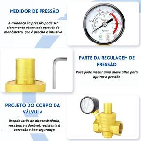 Vrp tk- 905 valvula redutora pressao latao com manometro dn 1.1/4pol Válvula redutora para agua x000d Regulagem de 1 a 16 bar 250 psi x000d Corpo em latão hpb57-3 x000d Extremidades rosca gás bsp ff x000d Saída para manômetro flp 1/4 manômetro incluído x000d Compatível com água x000d Temperatura de trabalho de -10ºc a 110ºc. x000d Pressão máxima de trabalho 10 bar pn16 . x000d A válvula redutora de latão usa as peças de abertura e fechamento da válvula para ajustar o fluxo do meio, reduzir a pressão do meio e, ao mesmo tempo, ajustar a abertura da válvula pela pressão atrás da válvula, de modo que a pressão final seja mantida dentro de uma determinada faixa. no caso de alterações constantes na pressão de entrada, a pressão de saída é mantida dentro da faixa definida para proteger os aparelhos residenciais e de produção subsequentes. x000d Função - regulação , descompressão x000d Aplicação - a válvula redutora só pode ser utilizada para a descompressão de gás limpo ou água como ar, vapor, água, que não contenha impurezas particuladas. se necessário, um filtro pode ser instalado antes da válvula redutora . Marca: Não Informado Ean: 7908633115869