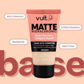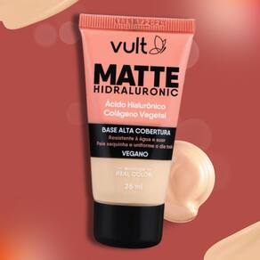 Vult Base Alta Cobertura Vegano Matte Hidraluronic V100 26ml A Base Alta Cobertura Vegano Matte Hidraluronic V100 da Vult é ideal para quem busca uma pele uniforme e sequinha ao longo do dia. Com uma fórmula enriquecida com Ácido Hialurônico e Colágeno Vegetal, essa base oferece alta cobertura e um acabamento fosco impecável, ao mesmo tempo em que hidrata e cuida da pele. O resultado é uma pele bonita e aveludada, sem brilho excessivo. Indicada para quem prefere produtos veganos, a Base Matte Hidraluronic proporciona uma aparência natural e duradoura, deixando a pele com um acabamento suave e uniforme o dia todo. A combinação de Ácido Hialurônico e Colágeno Vegetal também ajuda a melhorar a elasticidade da pele, proporcionando um cuidado extra enquanto disfarça imperfeições. Modo de uso: Aplique a base no rosto e pescoço com a ponta dos dedos ou utilize um pincel para um efeito mais intenso e uma cobertura ainda mais precisa. Marca: Não Informado Ean: 7899852022536