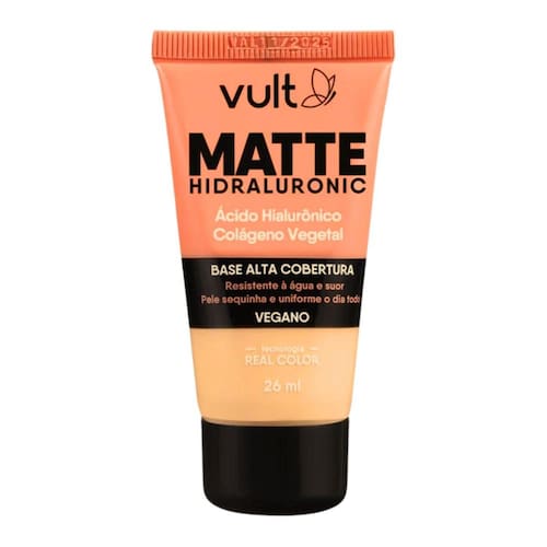 Vult Base Alta Cobertura Vegano Matte Hidraluronic V170 26ml A Base Alta Cobertura Vegano Matte Hidraluronic V170 da Vult é ideal para quem busca uma pele uniforme e sequinha ao longo do dia. Com uma fórmula enriquecida com Ácido Hialurônico e Colágeno Vegetal, essa base oferece alta cobertura e um acabamento fosco impecável, ao mesmo tempo em que hidrata e cuida da pele. O resultado é uma pele bonita e aveludada, sem brilho excessivo. Indicada para quem prefere produtos veganos, a Base Matte Hidraluronic proporciona uma aparência natural e duradoura, deixando a pele com um acabamento suave e uniforme o dia todo. A combinação de Ácido Hialurônico e Colágeno Vegetal também ajuda a melhorar a elasticidade da pele, proporcionando um cuidado extra enquanto disfarça imperfeições. Modo de uso: Aplique a base no rosto e pescoço com a ponta dos dedos ou utilize um pincel para um efeito mais intenso e uma cobertura ainda mais precisa. Marca: Não Informado Ean: 7899852024301