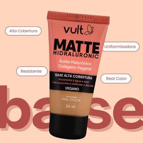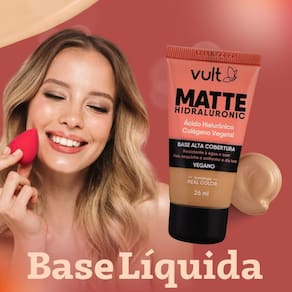 Vult Base Alta Cobertura Vegano Matte Hidraluronic V320 26ml A Base Alta Cobertura Vegano Matte Hidraluronic V320 da Vult é ideal para quem busca uma pele uniforme e sequinha ao longo do dia. Com uma fórmula enriquecida com Ácido Hialurônico e Colágeno Vegetal, essa base oferece alta cobertura e um acabamento fosco impecável, ao mesmo tempo em que hidrata e cuida da pele. O resultado é uma pele bonita e aveludada, sem brilho excessivo. Indicada para quem prefere produtos veganos, a Base Matte Hidraluronic proporciona uma aparência natural e duradoura, deixando a pele com um acabamento suave e uniforme o dia todo. A combinação de Ácido Hialurônico e Colágeno Vegetal também ajuda a melhorar a elasticidade da pele, proporcionando um cuidado extra enquanto disfarça imperfeições. Modo de uso: Aplique a base no rosto e pescoço com a ponta dos dedos ou utilize um pincel para um efeito mais intenso e uma cobertura ainda mais precisa.