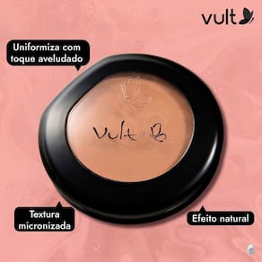 Pó Compacto ?Vult é livre de fragrâncias e óleos. O rosto fica com aspecto mais uniforme e matificado com aspecto natural.