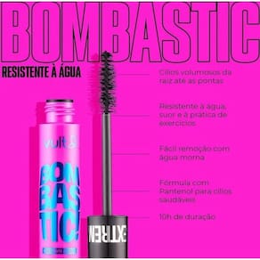 Vult Máscara de Cílios Extreme Bombastic 10g A Vult Extreme Bombastic é uma máscara para cílios de alta performance, com fórmula resistente à água, suor e exercícios. Garantindo volume intenso, curvatura marcante e alongamento uniforme, oferece um visual dramático com duração de até 10 horas. Características: Efeito bombástico: promove cílios volumosos da raiz às pontas desde a primeira aplicação Fórmula resistente à água, suor e atividades físicas, com remoção facilitada em água morna Ativos nutritivos: contém pantenol, vitaminaE e óleo de coco, que fortalecem e condicionam os fios Pigmentação intensa: preto profundo com durabilidade de até 10 horas Cruelty-free: não é testada em animais Modo de Uso: Aplique o produto da raiz às pontas utilizando o movimento em zigue-zague para separar os fios. Construa camadas para intensificar o volume e alongamento. Remova com água morna e demaquilante suave. Cuidados: Uso externo; evite contato com olhos. Interrompa o uso se surgirem irritações. Trocar a máscara a cada 3 a 6 meses para evitar contaminações. Conservação em local fresco, longe de calor e luz direta. Marca: Não Informado Ean: 7899852024233