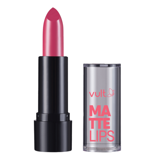 Batom com acabamento matte aveludado. Vult Matte Lips possui textura confortável, alta pigmentação e alta cobertura duradoura.