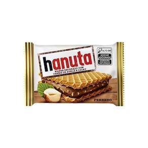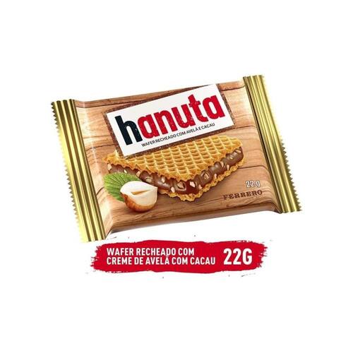 Biscoito Hanuta com Creme De Avelã Ferrero 22g Da famosa Ferrero, Hanuta é como um sanduíche doce delicioso, combinando a crocância do wafer, com o creme de cacau e avelãs.Essa é a versão Hanutinha, de 22g, que você poderá levar para qualquer lugar e saborear nas horas mais inesperadas.Marca: FerreroComposição: açúcar, gordura vegetal, farinha de trigo, avelãs, massa e manteiga de cacau, baunilha.Alergênicos: contém glúten, lactose, avelãs, derivados de trigo, leite e soja; pode conter nozes, castanhas.Peso: 22g