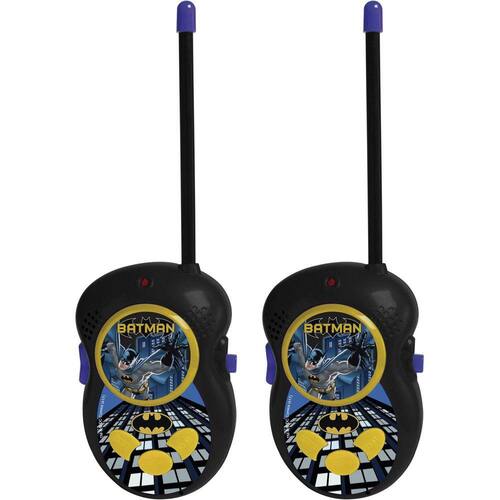 Intercomunicador infantil (Walkie Talkie) do Batman. Possui clipe para prender junto ao corpo. Utiliza 2 baterias 9v (1 para cara intercomunicador), não inclusas. Esse produto é Certificado e aprovado pelo Órgão Autorizado CE BRI/INNAC-01637-000 Compri.: 5 Largura: 18,50 Altura: 23 Peso: 0,1780