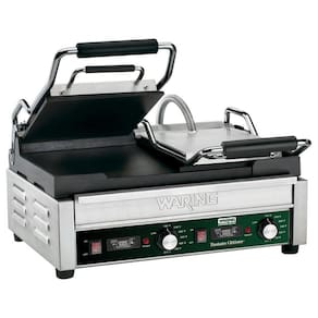 O Waring WFG300T Tostato Ottimo é uma churrasqueira panini profissional que oferece desempenho superior para preparar sanduíches, hambúrgueres, quesadillas e muito mais, com rapidez e perfeição. Equipado com placas duplas de ferro fundido lisas na parte superior e inferior, esta grelha garante distribuição uniforme do calor, resultando em um dourado perfeito e um alimento sempre suculento e bem cozido. Com uma ampla área de cozimento de aproximadamente 43 x 24 cm, você pode grelhar múltiplos itens ao mesmo tempo, aumentando sua produtividade na cozinha.
