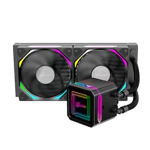 Water Cooler Kalkan Delta ARGB 240mm com TDP de 280W, compatível com sockets Intel LGA 115X/1200/1700/1851/1366/2011/2066 e AMD AM2/AM3/AM4/AM5. Possui bomba com velocidade de 3200 RPM e rolamento de cerâmica, duas ventoinhas de 120mm com controle PWM (800-2000 RPM), fluxo de ar de 56.8 CFM e pressão estática de 1.49 mmH20. Iluminação ARGB endereçável e sistema de conexão 'wireless' entre as ventoinhas.Vendido por Pro Setup E-Commerce e entregue por Extra