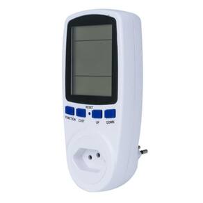 DESCRICAO DO PRODUTO Wattimetro Digital AC Medidor Consumo De Energia 1800w 120v 60Hz Este medidor pode ser para medir o consumo de aparelhos/equipamentos eletricos. Ele e capaz de medir tensao V , corrente A , frequencia Hz , fator de potencia PF , potencia instantanea W e potencia consumida KWH . Tambem e capaz de identificar o consumo minimo e maximo no periodo de funcionamento dele. Alem disso, voce pode informar o valor do custo do KWH para que ele calcule o custo do seu consumo. Possui botao para resetar os valores acumulados, quando desejado. Especificacoes: - Consumo de energia do monitor de medidor de energia: 0.5 W - Corrente de funcionamento: max 15A - Ampla faixa de tensao: 110 a 130V precisao: 1 casa decimal - Faixa de medicao de potencia de 0-1800W precisao: 1 casa decimal - Intervalo de tempo de exibicao: 0 segundo-9999 dias - Faixa de medicao de corrente: 0.000A-15.000A Precisao: 3 casas decimais - Faixa de medicao do fator de potencia: 0.01 a 1PF Precisao: 2 casas decimais - Faixa de medicao de frequencia: 0Hz-70Hz - 3-pinos plugue BR ITENS INCLUSOS 1 x Wattimetro de tomada padrao BR 120V 60Hz 1 x manual usuario em lingua inglesa Marca: Não Informado Ean: 07893000505018