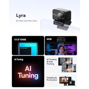 - (Webcam de 4K e 50 MP) O verdadeiro 4K do Lyra a 30 fps captura todos os detalhes, como as expressões faciais do palestrante, o produto que você está exibindo ou até mesmo a textura da roupa — ideal para reuniões profissionais e transmissões ao vivo envolventes. Alimentado por um sensor de 50 MP, ele oferece imagens ultrarrealistas e de alta qualidade para uma experiência de visualização extraordinária.