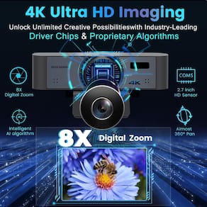 -?Webcam com tecnologia de rastreamento de IA e capa de proteção de privacidade?Graças à sua unidade de hardware exclusiva e tecnologia de IA, a webcam Rocware HD 4k pode fornecer uma qualidade de imagem impressionante e rastrear objetos em movimento mesmo em condições de pouca luz, o que é uma ótima opção para videoconferências de alto nível. A câmera Rocware 4k para computador também vem com uma capa de privacidade física, protegendo indivíduos e empresas