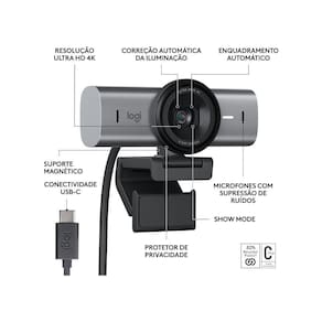 Webcam Ultra Hd 4K Logitech Mx Brio Com Redução De Ruído