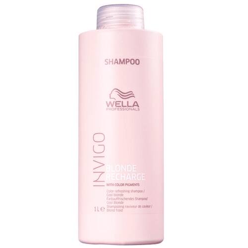 Shampoo desamarelador para cabelos loiros coloridos, naturais ou com mechas. Wella Professionals Invigo Blonde Recharge Shampoo elimina os tons amarelados e acobreados indesejados com seus pigmentos violeta. Assim, além de limpar, mantém a cor bonita e com muito brilho.