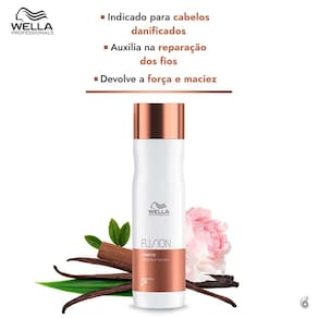 Shampoo para cabelos danificados. Wella Professionals Fusion auxilia na reparação dos danos para devolver a força e a maciez dos fios extremamente fragilizados. Ele possui fórmula suave que realiza uma limpeza que não compromete a saúde da fibra capilar.