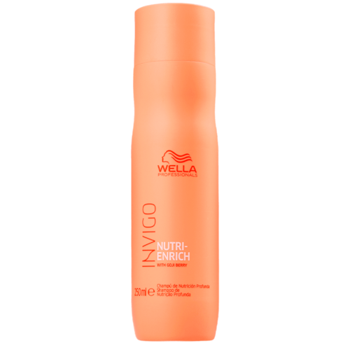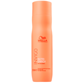 Shampoo para cabelos secos, ressecados ou quimicamente tratados. Wella Professionals Invigo Nutri-Enrich promove limpeza com nutrição instantânea. O Shampoo Wella Invigo Nutri-Enrich apresenta fórmula rica em ingredientes que proporcionam maciez absoluta e muito brilho, uma vez que suaviza a superfície do cabelo. Ele atua tanto na reposição de nutrientes essenciais como na hidratação. Possui ainda uma fragrância luxuosa frutal chipre almiscarada. O embaixador de Wella Professionals, Dougllas Dias, que assinou o look da campanha de Invigo Nutri-Enrich, diz: ?O que eu mais gosto dessa linha, é que ela deixa o cabelo cada vez mais tratado, com um toque sedoso, macio e muito brilho. E ainda é possível intercalar com outros produtos Invigo, como da linha Balance para cuidar do seu couro cabeludo ou a Color Brilliance, para quem tem cabelo colorido, por exemplo?.