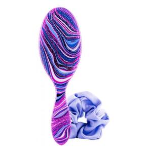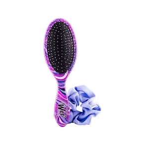 O Kit Wet Brush Swirt Style possui uma escova formada por cerdas de flexibilidade inteligente que evitam a quebra do cabelo, além de contar com exclusivos SofTips ™ que estão aplicados no topo das cerdas permitindo massagear o couro cabeludo e estimulando a circulação no folículo. Já o elástico para cabelo, não prende, não puxa e não causa danos as madeixas.
