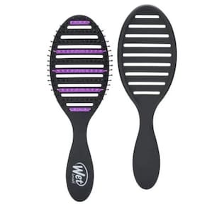 Wet Brush Speed Dry Purifying- Escova de Cabelo Preta/Roxa Apresenta tecnologia exclusiva de cerdas triplas para ajudar a manter o cabelo saudável, macio e brilhante. Desembaraça suavemente o cabelo úmido, além de cerdas com infusão de carvão e tiras de TPE ultramacias que reduzem o frizz e melhoram a maleabilidade. O design de ventilação aberta permite a passagem de ar pela escova, tornando-a uma excelente escova para retirar a água dos cabelos com o auxílio de um secador, acelerando o tempo de secagem e reduzindo a exposição dos cabelos ao calor. O carvão ativado ajuda a limpar as impurezas do cabelo, elimina o excesso de sebo e purifica a haste capilar. Ideal para refrescar, desembaraçar e modelar cabelos oleosos, permitindo que os cabelos respirem após uma limpeza profunda.