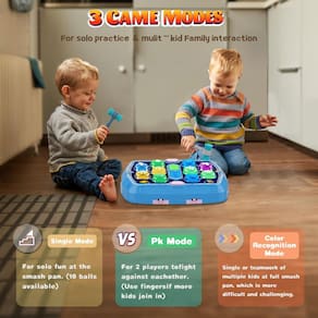 - 👍 Brinquedo de jogo Whack Mole: as crianças podem competir com amigos ou pais para marcar pontos martelando a bola piscante em música rítmica. Você pode ouvir sons realmente gritantes e ver uma bola colorida piscando ao bater, tornando a atmosfera de jogo emocionante e feliz. Este brinquedo de jogo whack mole está disponível para crianças de 3 a 5 a 8 anos.