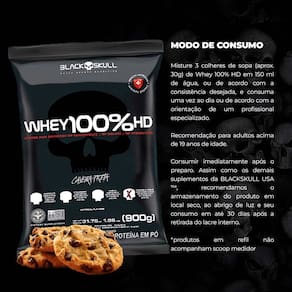 O Whey 100% HD Blackskull USA™ é mais um mega suplemento da linha Caveira Preta Series. Composto por três tipos de Whey Protein (concentrado, isolado e hidrolisado), é uma ótima opção para auxiliar no desenvolvimento muscular. Sua composição conta também com a adição de BCAA (leucina, isoleucina, valina) que são, aminoácidos de cadeia ramificada e contribuem para uma melhor recuperação pós-treino. O Whey Protein é uma proteína do soro do leite, sendo um dos suplementos mais consumidos do mundo atualmente por diversas áreas esportivas e clínicas; garante proteínas de alto valor biológico auxiliando no desenvolvimento e recuperação das fibras musculares tanto em atletas quanto em de praticantes de atividades físicas em geral, até mesmo em pacientes que necessitam de uma dieta enteral.