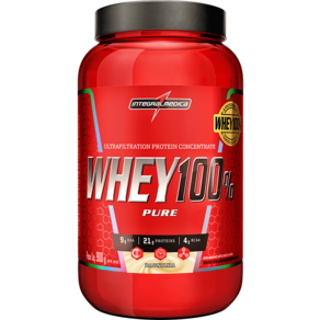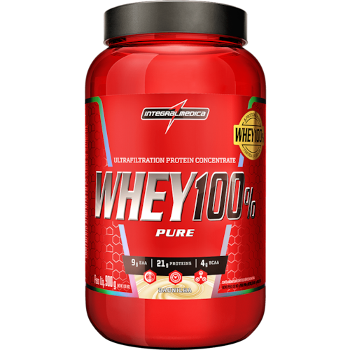 O Whey 100% Pure é o suplemento ideal e essencial para quem busca ganho de massa magra e recuperação muscular. Composto pela proteína concentrada do soro de leite, são 21 g de proteína por dose, 9,7 g de aminoácidos essenciais e 4,6 g de BCAA. Uma ótima opção para o pós treino, o Whey 100% Pure auxilia na manutenção da massa magra, possui baixo teor de carboidrato, gordura e sódio. Zero Glúten. Alta qualidade para a sua suplementação, o Whey 100% Pure Integralmédica contém matéria-prima importada, e ótima absorção pelo organismo, evitando a sensação de inchaço após o consumo. A proteína do soro é a fonte mais nobre de proteína do leite com alto valor biológico, isso devido a sua alta concentração de aminoácidos essenciais e aminoácidos de cadeia ramificada (BCAA), esses aminoácidos têm papel fundamental na síntese de proteínas e construção muscular. Whey 100% Pure Integralmédica está disponível em 6 sabores, versões pote de 900g, pote de 450g, Pouch de 900g e Pouch de 1,8kg.
