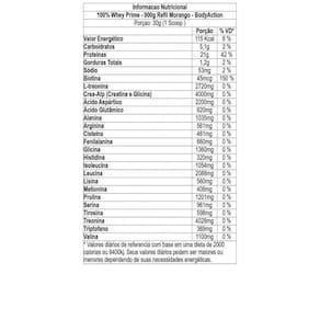 Descrição Chegou o 100 whey prime, desenvolvido com whey concentrado, obtido através de um processo de ultrafiltração. Suas exclusivas fórmulas crea-atp e t-biotine irão elevar o seu ganho de massa muscular Crea-atp: creatina com potência dobrada através da fórmula potencializada com glicina elevando o ganho de força e os níveis de energia durante os treinos. T-biotine: potencializa os níveis de energia através do transporte de oxigênio no sangue. Ajuda a diminuir dores, fazer com que os treinos sejam mais intensos e melhorar os ganhos de massa muscular. Atua diretamente na produção de elastina no tecido muscular. Como tomar Misture 30g aproximadamente 1 scoop em 200ml 1 copo americano de água ou bebida de sua preferência. Variar, se preferível, a quantidade de líquido para obter sabor e consistência desejada. Sugestão de uso: consumir 1 uma porção 1 uma vez ao dia após o treino ou conforme orientado por nutricionista ou médico para satisfazer as suas necessidades de proteínas. Produto indicado para maiores de 19 anos. Advertências: este produto não é um . Não exceder a recomendação diária de consumo indicada na embalagem. Mantenha fora do alcance de crianças. Este produto não deve ser consumido por gestantes, lactantes e crianças. Ingredientes Proteína concentrada do soro do leite wpc , crea-atp creatina e glicina l-treonin, biotina, espessante goma xantana, edulcorante glicosídeo steviól stévia rebaudiana e aroma natural de baunilha. Não contém glúten. Contém lactose. Alérgicos: contém derivado do leite. Pode conter traços de soja. Produzido em equipamento onde se processam estes alimentos, contudo ações preventivas de limpeza são adotadas para evitar essa ocorrência. Marca: Não Informado Ean: 7897104922672