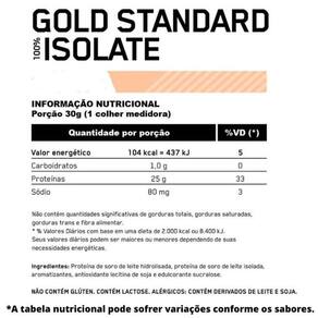 O Whey Protein 100% Isolado Gold Standard é composto da versão mais pura da proteína isolada do soro do leite, foi formulado com a melhor matéria prima do mercado internacional, e além disso passa por diversos processos sofisticados de filtração para que assim possa eliminar o excesso de gordura, açúcar e colesterol e concentrar o máximo de aminoácidos presentes e com isso potencializar o organismo possa absorver de forma satisfatória o essencial para uma boa recuperação muscular.