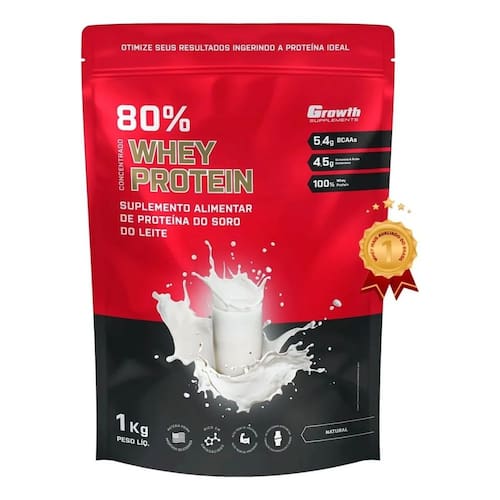 Este produto é referente a um Whey de 1Kg. Está Adquirindo: UMA PORÇÃO DE 30g DO SABOR NATURAL FORNECE: PROTEÍNAS 24g UMA PORÇÃO DE 30g DOS DEMAIS SABORES FORNECE: PROTEÍNAS 23g BENEFÍCIOS DO WHEY PROTEIN Aumento do volume muscular. Ajuda na redução de gorduras. Potencializa a resposta de recuperação do tecido muscular. Combate a inflamação local do tecido muscular. Alta concentração de aminoácidos de cadeia ramificada. Alta concentração de aminoácidos essenciais. Ex: individuo com 70kg de peso 70 X 0,4 = 28gr de whey Esta quantidade pode ser maior, como também pode ser menor, depende de cada caso. Marca: Growth Suplements Ean: 7890010702093