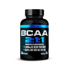>> Bcaa 2:1:1 - 60 Cápsulas O nosso BCAA 2:1:1 ainda conta com Vitamina B6, que ajuda no metabolismo das proteínas além de auxiliar a eliminar a retenção de líquidos. Benefícios: - Redução da fadiga; - Ajuda na produção de energia; - Aumento da resistência muscular; - Fortalecimento do sistema imunológico; - Melhora da performance na pratica de exercícios físicos; Sugestão de Uso: Ingerir 4 cápsulas ao dia. Ingredientes: L-leucina, L-isoleucina, L-valina, Vitamina B6. Não Contém Glúten. Advertências: Crianças, gestantes, idosos e portadores de qualquer enfermidade devem consultar o médico e/ou nutricionista. Este produto não substitui uma alimentação equilibrada e seu consumo deve ser orientado por um nutricionista e/ou médico. Conservar este produto bem fechado, em lugar fresco e seco, protegido dos raios solares. Depois que aberto, consumir preferencialmente em até 30 dias.