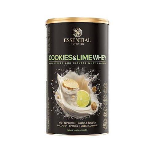 O Whey Protein Cookies & Lime Essential Nutrition é um suplemento proteico elaborado com whey protein hidrolisado e isolado, combinado ao sabor inovador e refrescante de cookies com limão. A proposta é unir praticidade e um perfil nutricional equilibrado em um produto de alta qualidade, ideal para quem deseja incorporar uma fonte proteica saborosa ao dia a dia.