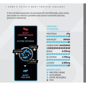 Sugestão de uso: Dilua uma medida de Whey Protein Isolado em 250 - 350ml de água. Ideal para ser consumido pré/pós treino, ao acordar, entre as refeições ou conforme orientação do seu nutricionista e/ou médico."