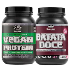 Contém proteína isolada de soja, porteína de ervilha, proteína de arroz integral e associações.