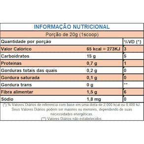 - 20g (1 scoop) equivale a 80g de Batata Doce.