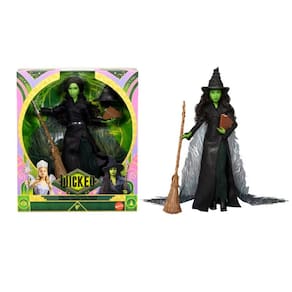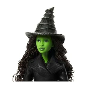 Assim como no filme, Elphaba atordoa com seu vestido verdadeiro para o cinema com detalhes texturizados e brilhantes e capa com bordas desfiadas. Sua vassoura, chapéu, Grimmerie e botas combinam lindamente com a roupa removível. Seus longos e esvoaçantes cabelos trançados completam o lendário visual. Boneca não pode ficar sozinha.