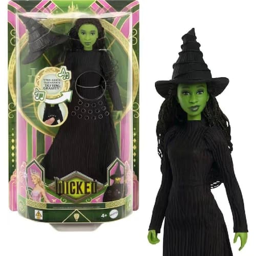 A boneca musical Elphaba é inspirada no icônico filme Wicked, da Universal Pictures, e oferece uma experiência interativa única para os fãs do musical. A figura de Elphaba captura a força e determinação da personagem, com um design detalhado, incluindo um vestido preto removível, chapéu pontudo e sapatos de salto grosso. Seu cabelo longo e trançado, junto com a pele verde, completa o visual marcante e fiel ao filme. Pressione o botão na boneca para ouvir trechos da famosa canção "Defying Gravity", permitindo que os fãs cantem junto com a personagem. Esta boneca é uma excelente opção de presente para os admiradores de Wicked e para aqueles que adoram colecionar figuras inspiradas no mundo dos musicais.