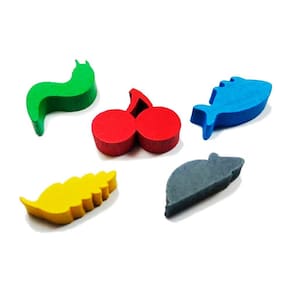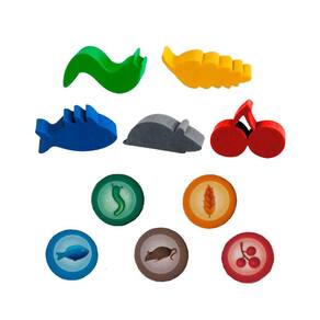 São 100 peças de alimentos para os pássaros, perfeitos para substituir os tiles de comida da sua jogatina de Wingspan.