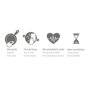 - Corpo de alumínio com espessura de 1,4 mm que proporciona cozimento rápido e uniforme.