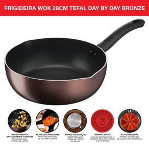 Com a Wok 28cm Tefal Day By Day Bronze, a Tefal entrega mais uma vez a confiança e a qualidade que você já conhece. Ideal para quem busca praticidade sem abrir mão do sabor e da durabilidade.